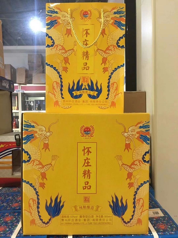 贵州酱香美酒甲天下,众所周知,贵州自古以来就以盛产酱香白酒而闻名天下在这里有很多知名的酱香白酒品牌。有大家耳熟能详的茅台酒,国台酒,这些都是以高端白酒为主打。当然了也有很多生产中高端的品牌酒,比如茅台镇最早的民营企业,怀庄酒业,公司生产的怀庄酒系列,不仅国内市场销量可观,并且出口东南亚部分国家和地区,得到了国内外人士的一致好评。今天介绍的这款怀庄精品龙酒,是怀庄有限公司最新推出的一款53度酱香型白酒。批发,团购:18937621356(微信同号)