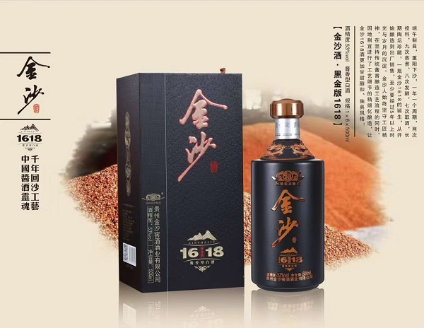 贵州省,酱香型白酒发源地,这块神秘的土地上,孕育着大大小小的酱香白酒品牌。其中金沙酒产地,处于乌江河畔的金沙源村,被誉为贵州二茅台,距今已有百年历史。随着这两年的酱香白酒的持续热销,金沙酱酒的销售额也是芝麻开花节节高,因为和茅台同根同源,都是正宗的酱酒制作工艺,价格亲民,群众基础好,因此深得广大群众的热爱。金沙酒.黑金版1618是金沙窖酒有限公司推出的一款53度酱香型白酒。