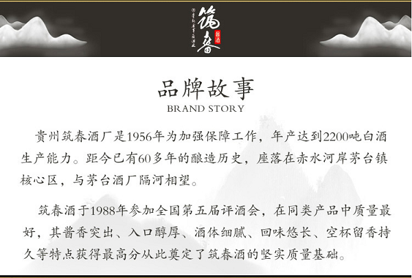 二是筑春是拥有60多年历史积淀的国有企业,品质值得信赖。酱香酒需要老酒作为基酒调制,只有历史悠久的酒企才可能自己存有年份基酒,作为拥有60多年历史的老牌企业,筑春拥有的基酒属于稀缺独特资源;同时,作为国有企业,筑春有着严格的生产流程和产品质量管理标准。筑春酒一年一个生产周期,从原料进厂到成品酒出厂,至少需要5年以上的时间,制酒过程需经九次蒸煮、八次发酵、七次取酒,历经春夏秋冬四季。独特的高温制曲、高温发酵、高温取酒工艺和长期储存是筑春酒品质形成的关键。