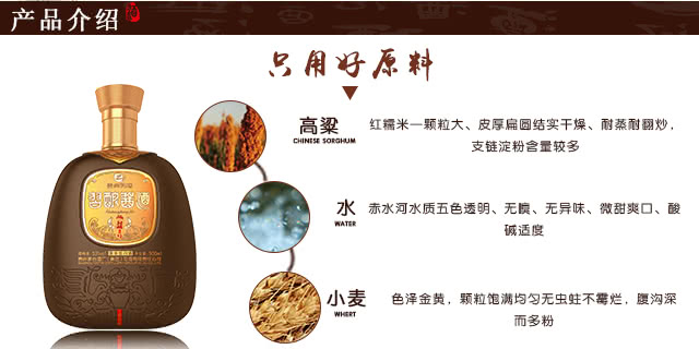 习酿酱酒选用贵州当地优质糯高粱为原料,以小麦高温制曲,采用传统酱香酒工艺,经两次投料,七次取酒、八次发酵、九次蒸煮,按质装坛,陈年贮藏,精心酿造。