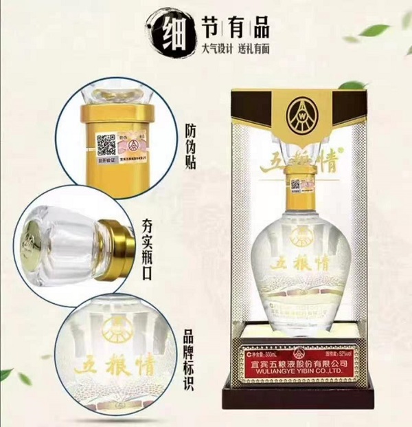 52度五粮情水晶瓶包装,亚克力外盒。外观高端大气,细节设计巧妙有品,适合商务宴请、节日礼品、亲友团聚小酌。精选五粮酿造,酒液澄澈口感醇厚,入口绵柔细腻爽净,余味悠长浓香突出,整体协调丰满。500ml单瓶京东官网折扣价288元。团购、批发电话:13203710360(微信同号)