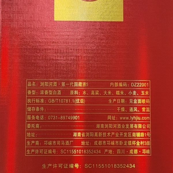 52度浏阳河酒.第一代国藏液5,产自中国最大白酒原酒基地邛崃市,由邛崃市司马酒厂生产的一款浓香白酒。采用独有酿造工艺酿制,浓香型风格突出,喝起来口感醇厚绵甜、柔和甘美、后味悠长。浏阳河酒.第一代国藏液5在市场上做的挺不错的,能适用于多种场合,适合大众消费的。团购、批发电话:13203710360(微信同号)