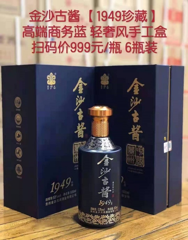 金沙古酱1949珍藏,高端商务蓝,包装沉稳大方,瓶身古典,手工盒包装独特,大气上档次。适合商务赠送,团圆宴请,过节走亲访友都是高端大气的选择。金沙古酱系列酒向来以中端市场为主打,市场零售价格不高,很是适合大众消费。团购、批发:13203710360(微信同号)